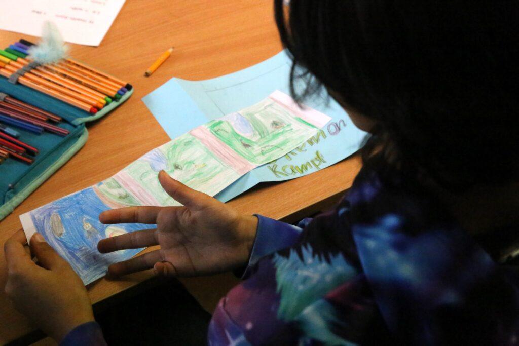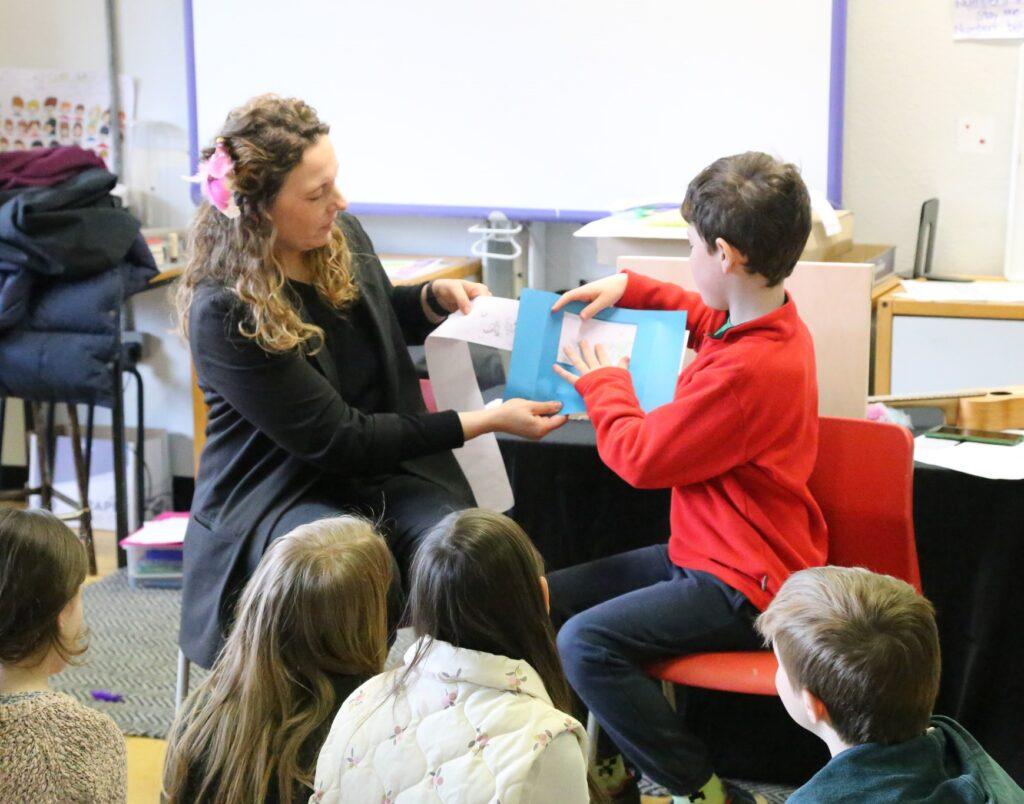 Im Anschluss an die Aufführung nahmen die Kinder an einem kreativen Workshop teil, in dem sie allein oder in Gruppen ihre eigenen Geschichten im Kamishibai-Stil entwickelten. Die Veranstaltung endete damit, dass die Kinder ihre Geschichten stolz ihren Klassenkameraden vorstellten. Es gab viele einzigartige Ideen und fantastische Illustrationen zu sehen, und alle hatten viel Spaß beim Zuhören.