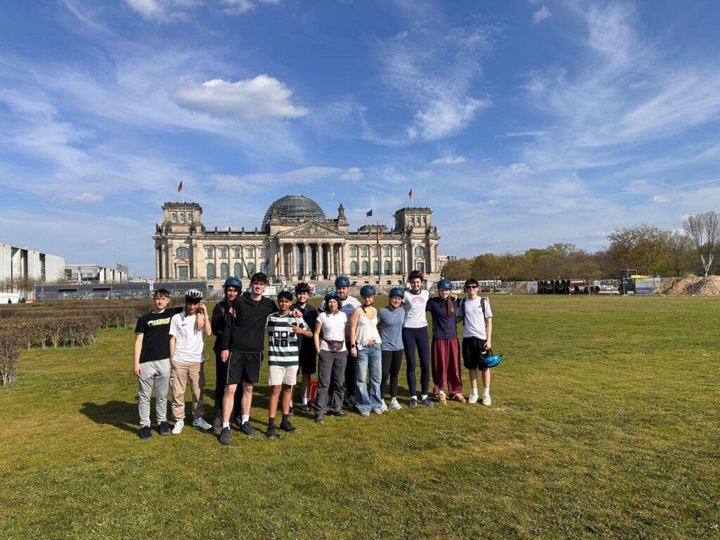 Letzte Woche, vom 13.-18. April 2026, machten sich 35 TY-Schülerinnen und -Schüler auf den Weg nach Berlin zu einer unvergesslichen Reise. Sie übernachteten in einer Jugendherberge und hatten ein abwechslungsreiches Programm mit Besuchen im Reichstag und im Stasi-Museum sowie einer Fahrrad- und einer Bootstour durch die Stadt. Auch mit dem Wetter hatten sie Glück: Bei strahlendem Sonnenschein und rund 20 °C konnten sie die Zeit in vollen Zügen genießen. Natürlich durfte auch das typische Essen nicht fehlen – Currywurst, Döner und Schnitzel standen ganz oben auf dem Speiseplan.