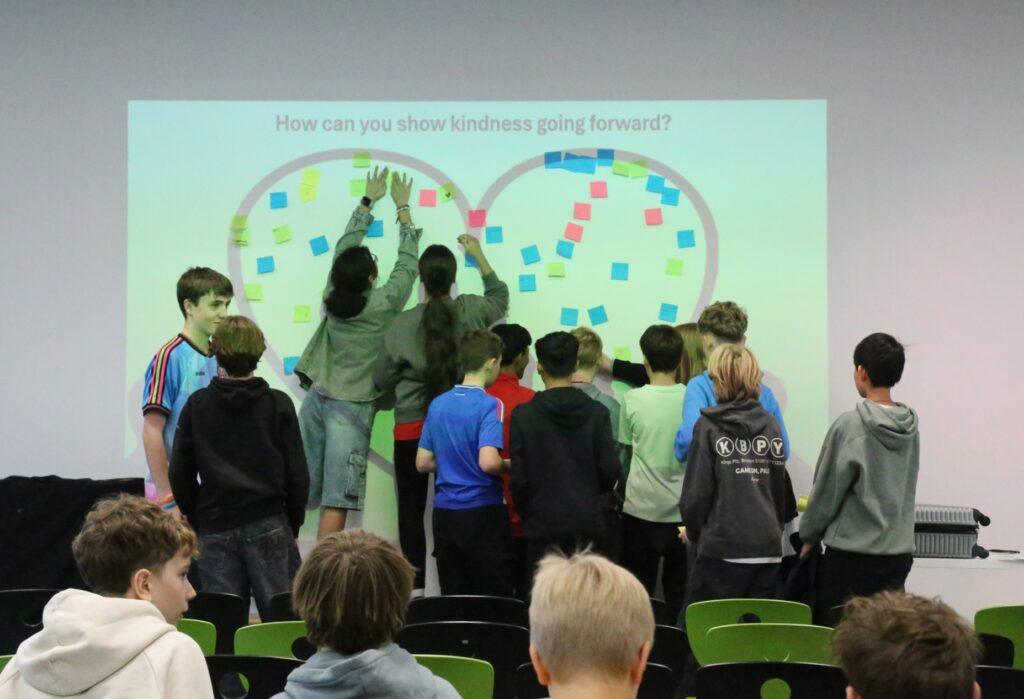 To mark World Kindness Day 2025, we welcomed Reuben the Entertainer, who delivered an engaging Comedy Performance ‘Pushed’ about peer pressure and bullying to our Junior Cycle students (7th–9th Classes). Through humour and interaction, Reuben encouraged the students to reflect on their everyday actions and their impact on others. Some of his key messages were “Be an Upstander, not a Bystander” and “It is cool to be just yourself”, which he delivered in a fun way. At the end the students wrote down how they can show kindness on post-its and shared them in a big heart. Thank you to Reuben for a morning full of laughter and learning.