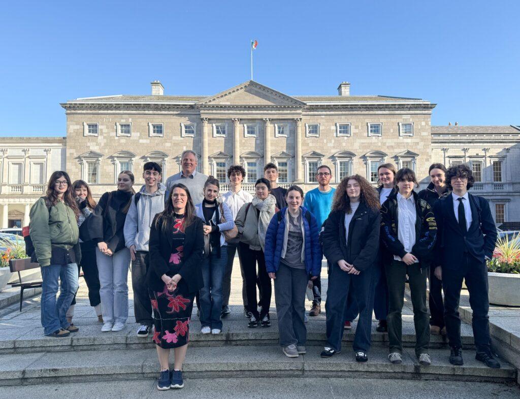 On Tuesday, March 10th 2026, PolSoc students and members of the European Union / MUN club visited Oireachtas – the Irish Parliament. They kicked off the event with a conversation with Social Democrat TD Sinéad Gibney, who had invited the group. After that, they got to witness a session of the Dáil, in which both the Taoiseach and opposition leaders were present. A special highlight was the brief visit to the Seanad, where the students got a special mention during the live debate. It was a fantastic experience for our budding future politicians and changemakers. A heartfelt Thank you to Ms Gibney for the hospitality!